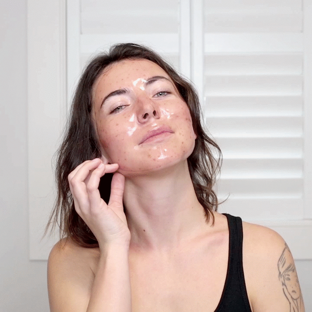 Regularly using the Gua Sha lifting massage helps to firm and reduce fine lines and tighten skin while unclogging and refining pores.